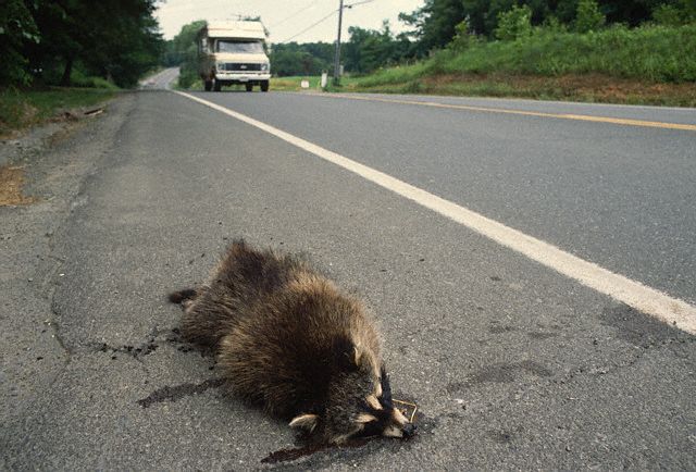 Here are the options: starvation, disease, poison, ripped apart while living by a predator, and vehicle impact.